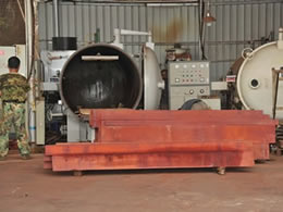 木材在干燥過程中一致處于液壓壓力狀態(tài)下,不易變形,甚至彎料能起到校直、校平作用,尤其是地板坯料或刨切木皮干燥。