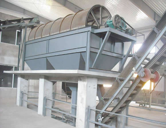 分級除雜滾筒篩: 滾筒篩整個設(shè)備有儲料倉、滾筒篩分機和皮帶輸送機組成。物料由裝載機裝入儲料倉,然后進入滾筒篩,旋轉(zhuǎn)的篩筒帶動物料在篩筒內(nèi)翻滾,從一端向另一端移動,小于設(shè)定(網(wǎng)眼)的物料由篩網(wǎng)漏出進入皮帶機,然后由皮帶輸送機匯集從另一端卸出,大于網(wǎng)眼的廢料部分從篩網(wǎng)另一端排出,整個過程連續(xù),物料分級準確,滾筒篩由電機、減速機、驅(qū)動聯(lián)軸器、軸承支座和篩籠等組成。