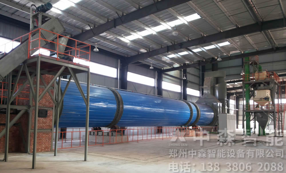 物料由供料裝置進(jìn)入回轉(zhuǎn)滾筒的內(nèi)層,實(shí)現(xiàn)順流烘干,物料在內(nèi)層的抄板下不斷抄起、散落呈螺旋行進(jìn)式實(shí)現(xiàn)熱交換,物料移動(dòng)至內(nèi)層的另一端進(jìn)入中 層,進(jìn)行逆流烘干,物料在中層不斷地被反復(fù)揚(yáng)進(jìn),呈進(jìn)兩步退一步的行進(jìn)方式,物料在中層既充分吸收內(nèi)層滾筒散發(fā)的熱量,又吸收中層滾筒的熱量,同時(shí)又延長 了干燥時(shí)間,物料在此達(dá)到預(yù)期干燥狀態(tài)。