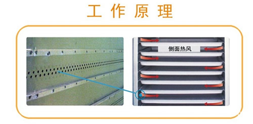 循環(huán)風(fēng)機(jī)將熱風(fēng)送入熱風(fēng)通道,再通過托盤架上的小孔進(jìn)入物料室,采用底通風(fēng)、側(cè)通風(fēng)、和頂通風(fēng)三種,并配備強(qiáng)大風(fēng)向交流系統(tǒng),使整個箱內(nèi)氣流充足。