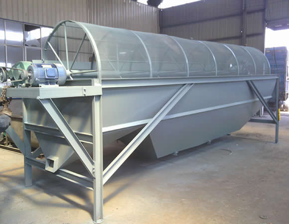 分級除雜滾筒篩: 滾筒篩整個設(shè)備有儲料倉、滾筒篩分機和皮帶輸送機組成。物料由裝載機裝入儲料倉,然后進入滾筒篩,旋轉(zhuǎn)的篩筒帶動物料在篩筒內(nèi)翻滾,從一端向另一端移動,小于設(shè)定(網(wǎng)眼)的物料由篩網(wǎng)漏出進入皮帶機,然后由皮帶輸送機匯集從另一端卸出,大于網(wǎng)眼的廢料部分從篩網(wǎng)另一端排出,整個過程連續(xù),物料分級準確,滾筒篩由電機、減速機、驅(qū)動聯(lián)軸器、軸承支座和篩籠等組成。