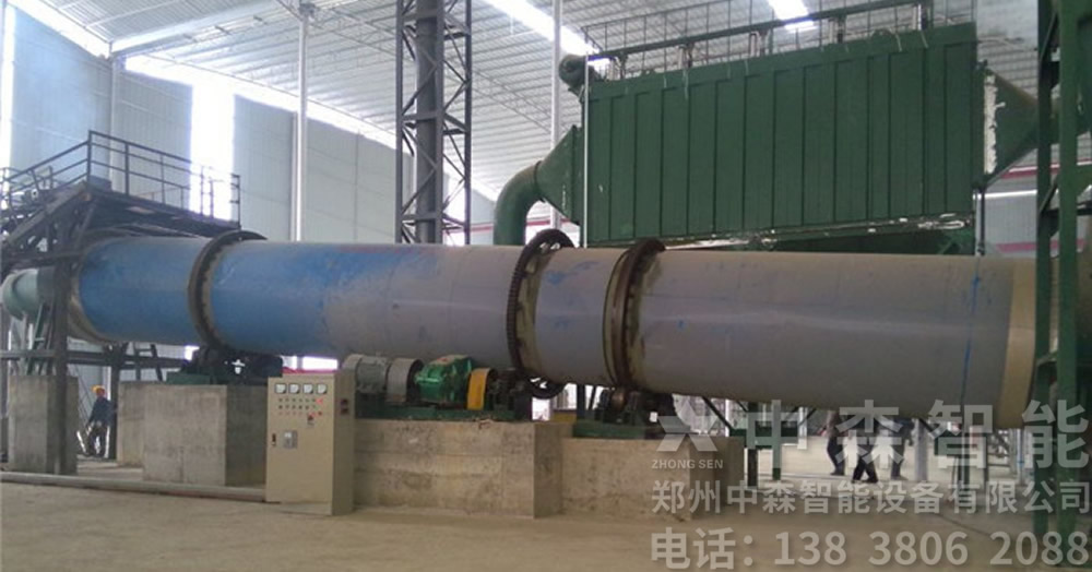 鋸末烘干機:包括生熱爐、進料口、旋轉筒、過濾筒、物料輸送管、冷卻筒和出料口,旋轉筒位于主動滾輪上,主動滾輪靠電機及減速傳動帶動旋轉筒低速轉動,生熱爐與旋轉筒之間設有進料口,旋轉筒內設有翻炒葉片,在旋轉筒與過濾筒4相連處設有擋板,擋板上開有一小孔,過濾筒一端與旋轉筒相連,另一端與物料輸送管相連,過濾筒內設有擋塊,過濾筒的底部設有排渣孔,冷卻筒一端通過鼓風機與物料輸送管相連,另一端與出料口相連。